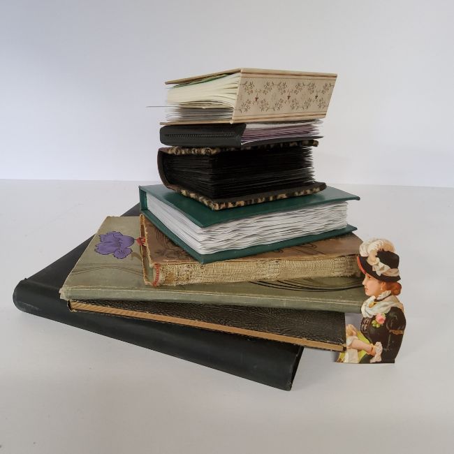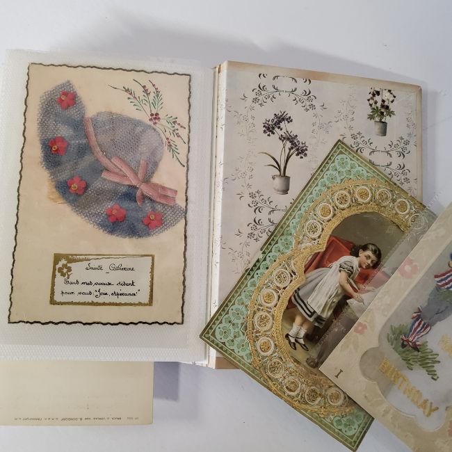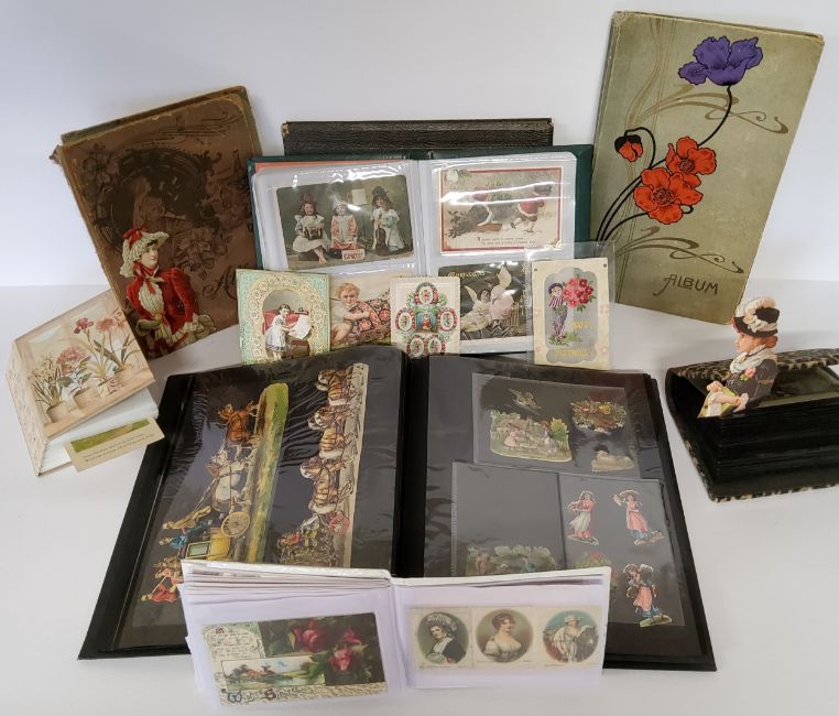 Postcards & Greetings Cards - various late Victorian and early 20th century greetings cards, postcards and scrapbook cut outs including two empty Art Nouveau postcard albums, qty