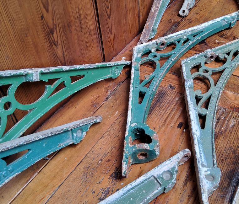 Salvage - a set of eight Richardson & Co iron conservatory or greenhouse brackets
