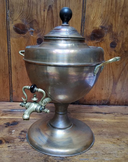 A 19th century copper samovar, ball finial, 37cm high, c.1880
