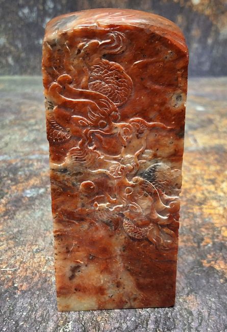 A Chinese hardstone seal, carved scrolling dragons, 9.5cm high